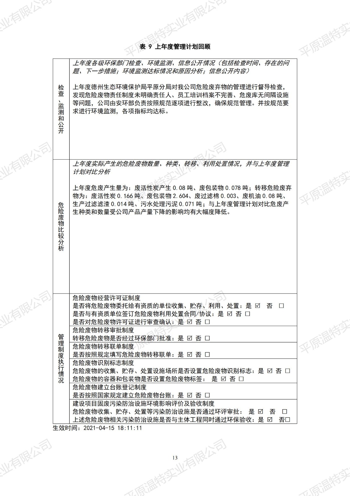 危險(xiǎn)廢物管理計(jì)劃